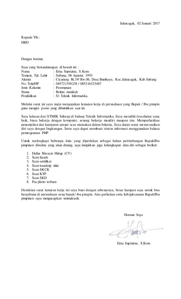 Contoh Contoh Surat Lamaran Kerja Dalam