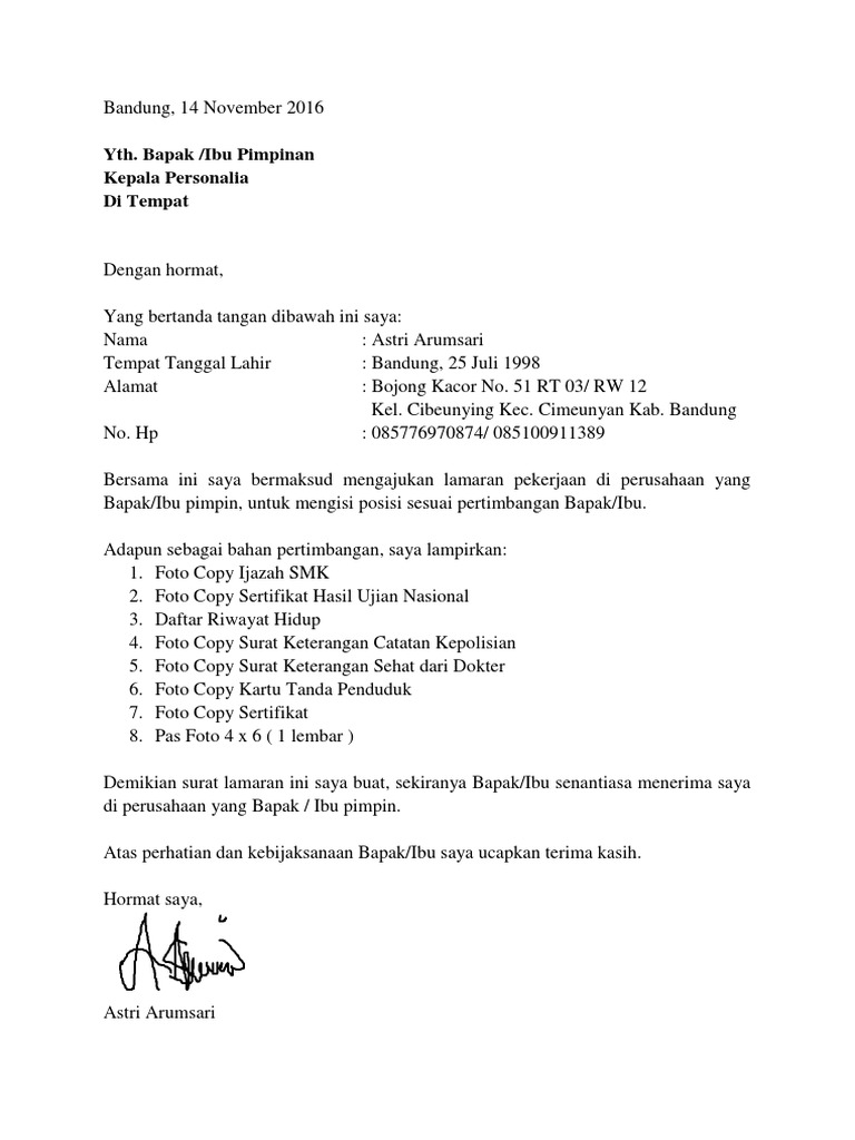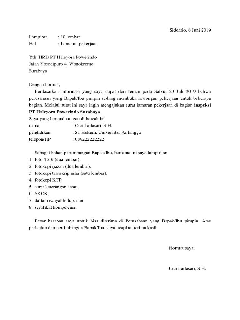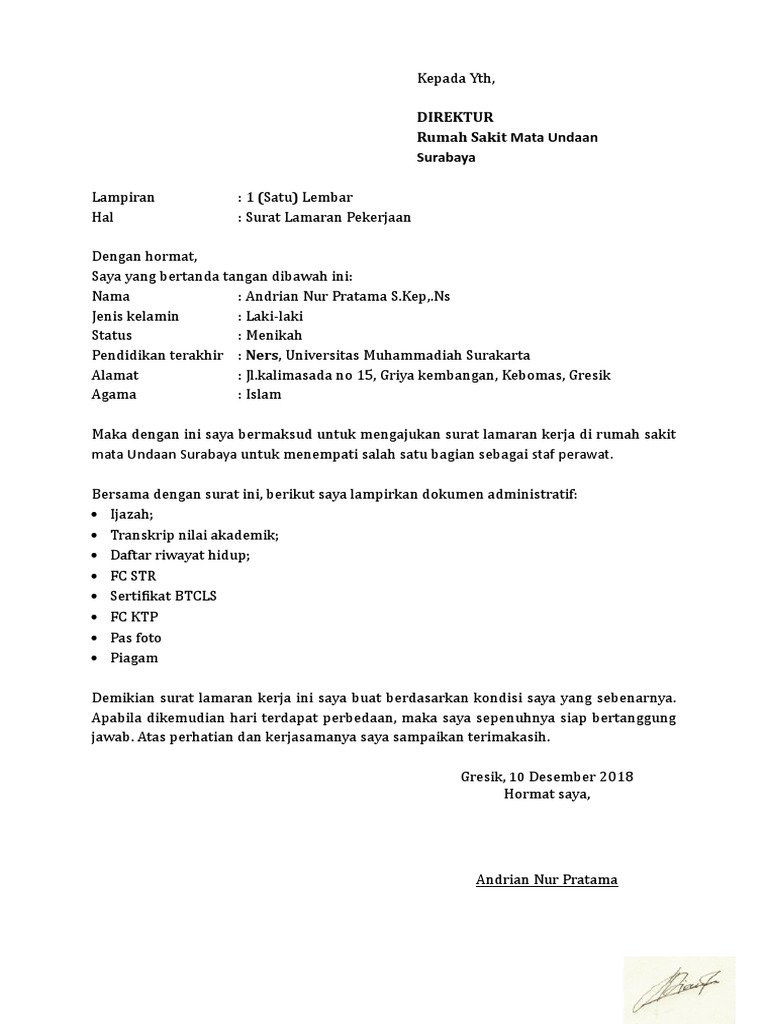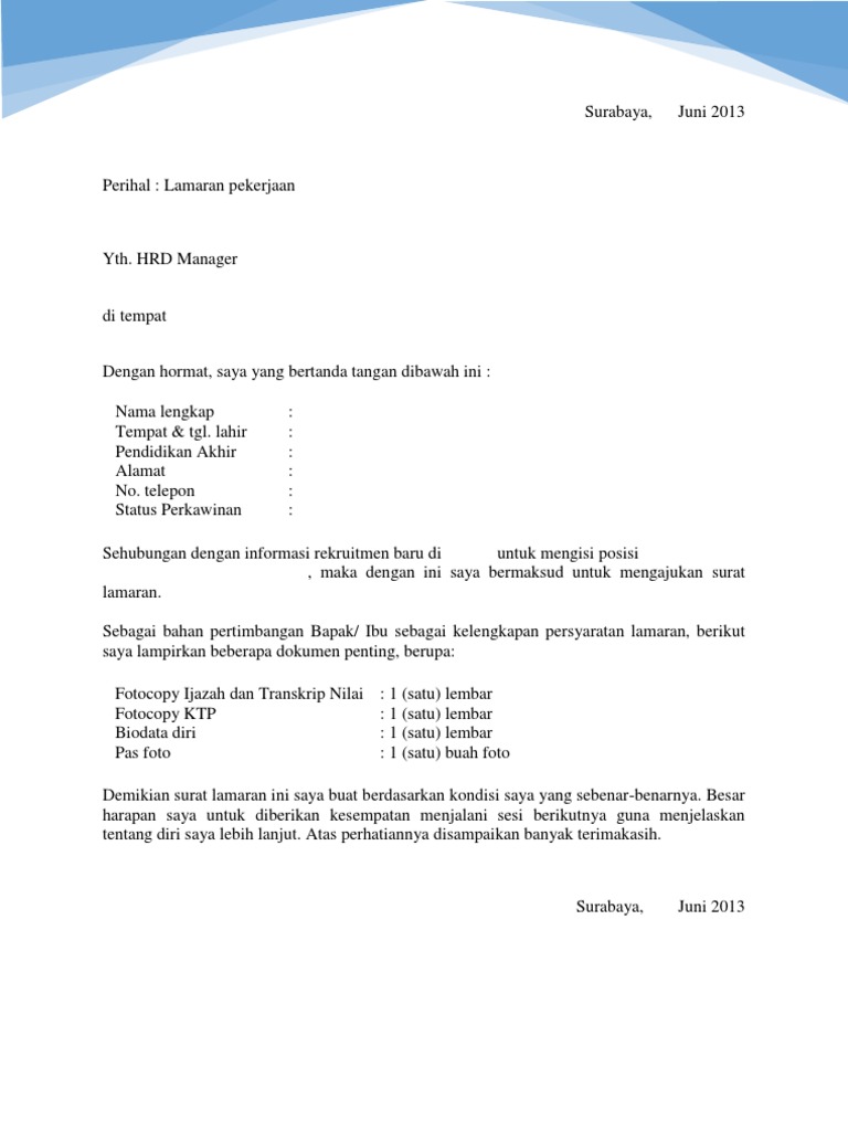 Contoh Surat Lamaran Pekerjaan Pdf