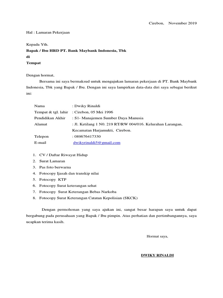 Surat Lamaran Kerja Maybank Pdf